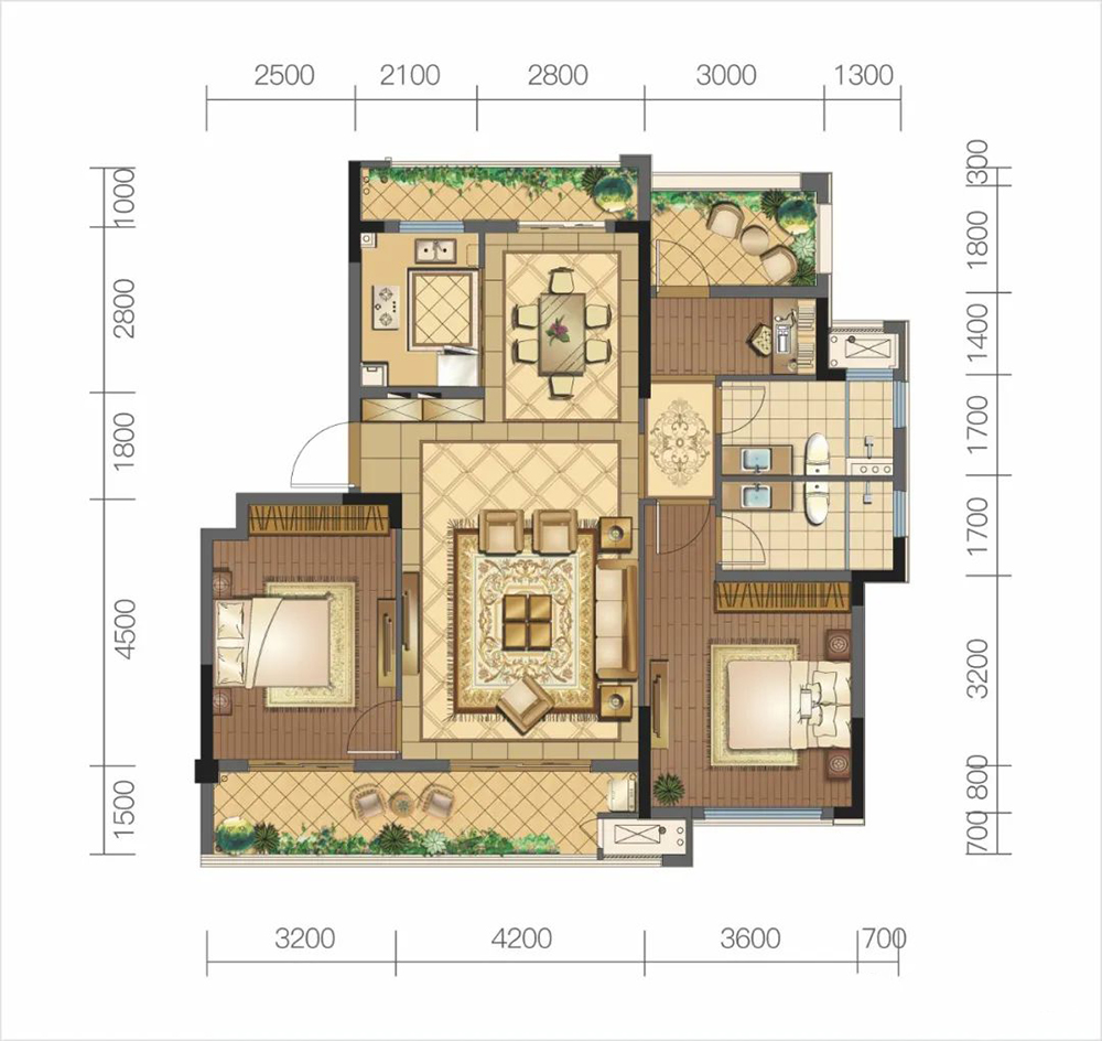 3室2厅2卫1厨