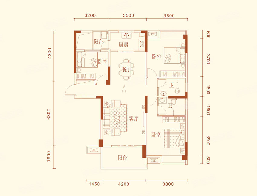 3室2厅2卫1厨