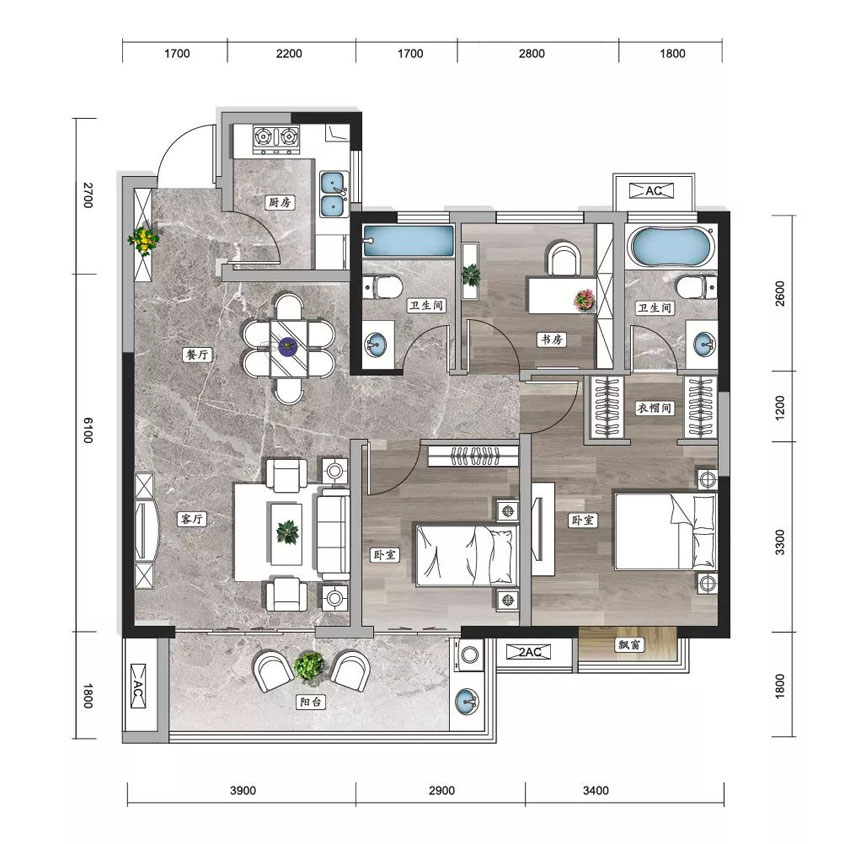 3室2厅2卫1厨