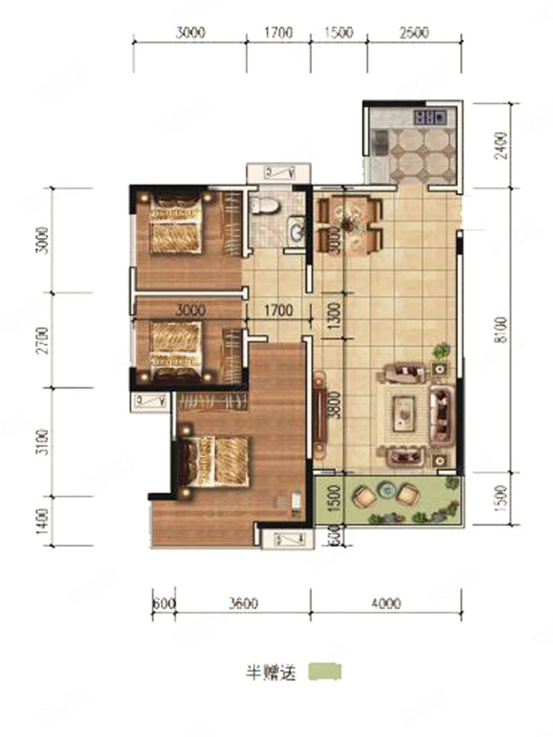 3室2厅1卫1厨